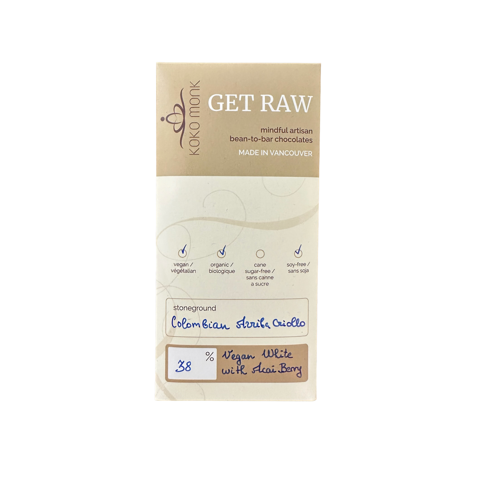 38% Vegan White Chocolate Bar with Açaí Berry.
