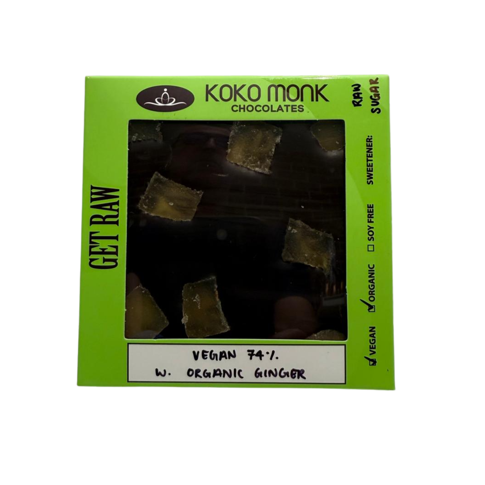 74% Dark Chocolate Bar with Organic Ginger.