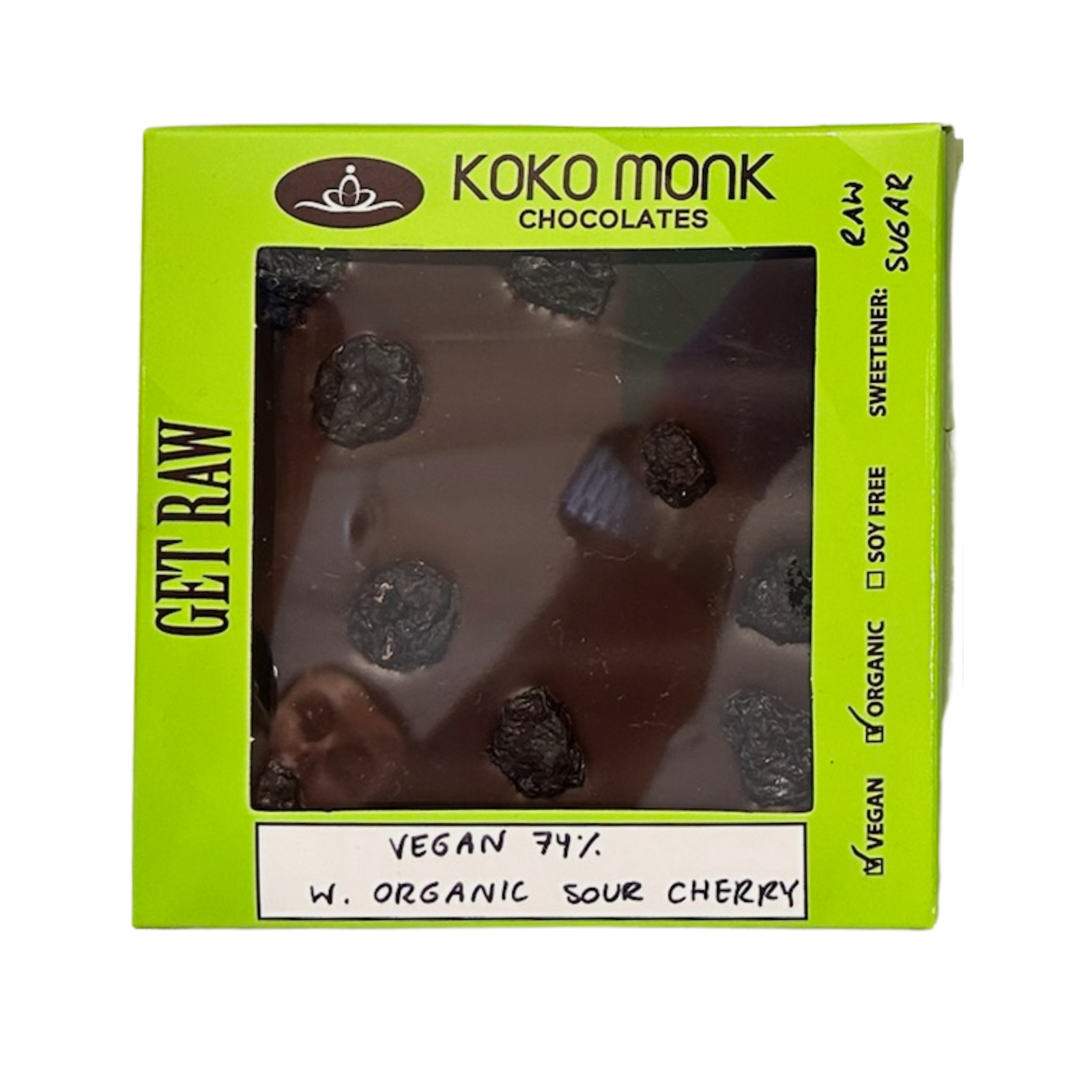 74% Dark Chocolate Bar with Organic Sour Cherry.