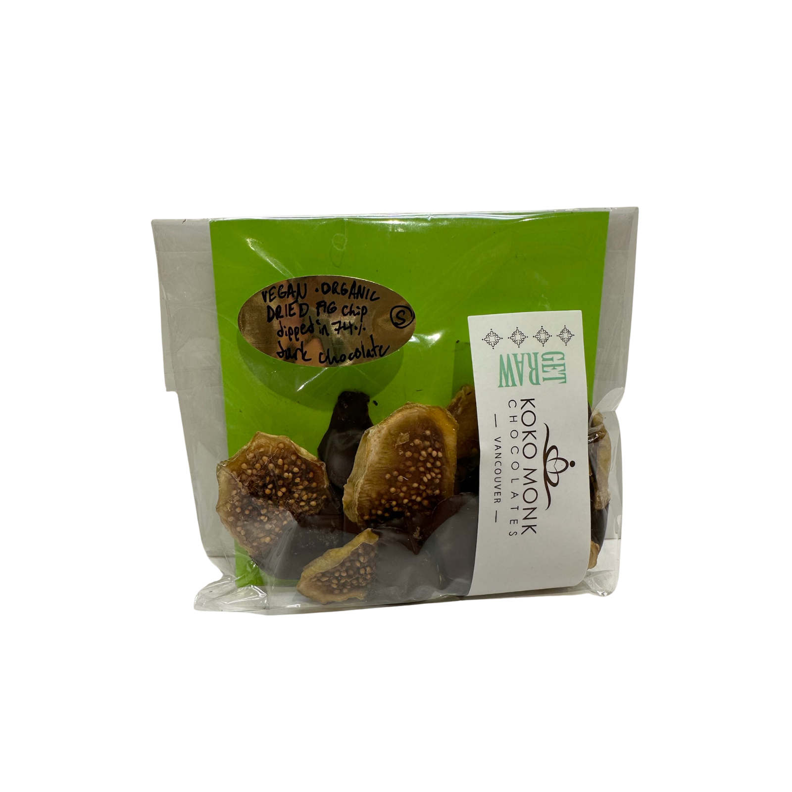 HomePage » Fruits, Nuts & Barks » 74% Dark Chocolate Dipped Organic Fig Slices